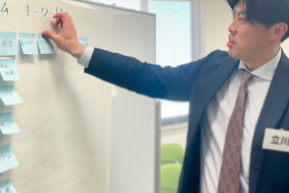 ワークショップには社長も参加されており緊張しましたが、全員でグランドルールを守って、普段の仕事とは意識を変えて臨むことができました。「とにかく楽しむこと」を忘れず、リラックスして意見を言い合えたと思います。